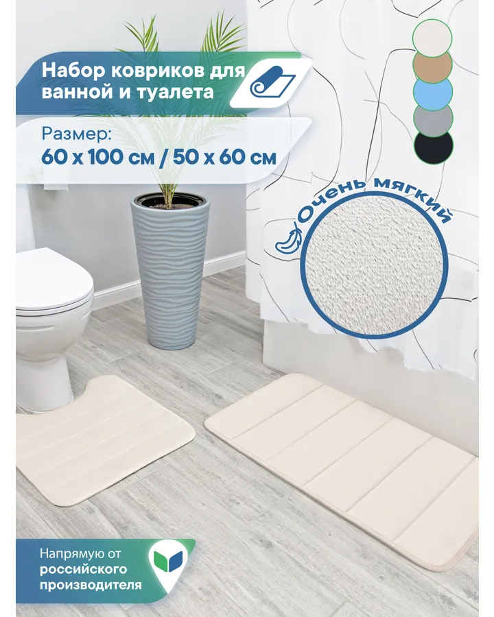 Коврик для ванной VILINA бежевый 65 x 90 см 1 шт.