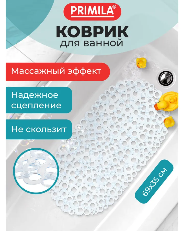 4Коврик для ванной PRIMILA Батискаф 40 x 100 смЯркий, красивый, но на ванну не липнет и ещё уже месяц никак до конца не расправится