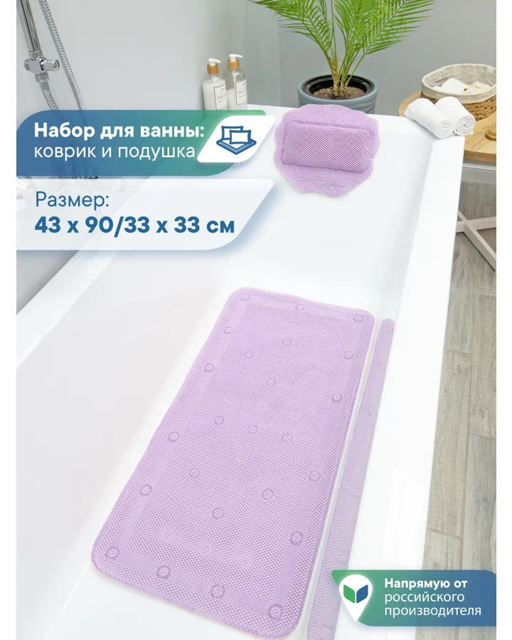 Коврик для ванной VILINA лаванда 43 x 90 см 1 шт.Коврик хороший, присоски держат хорошо, В использовании уже полгода нареканий нет.