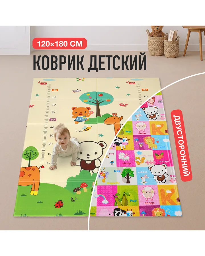 Развивающий коврик детский Mamagoods для ползания складной игровой 120х180 см Подводный мирЗамечательный коврик, удобный для малыша!