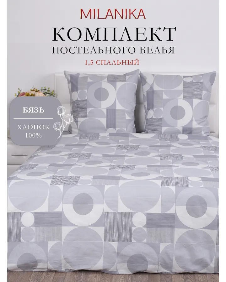 5Комплект постельного белья MILANIKA Диалог полутораспальный 4 предм.Отличное качество, плотный материал, хлопок. 👍