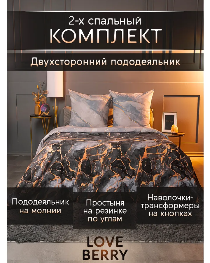 Комплект постельного белья LOVEBERRY Мрамор двуспальный 4 предм.