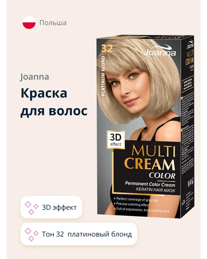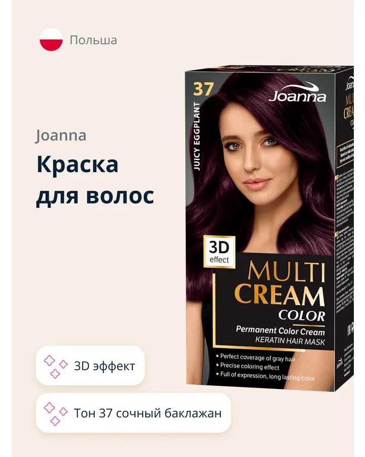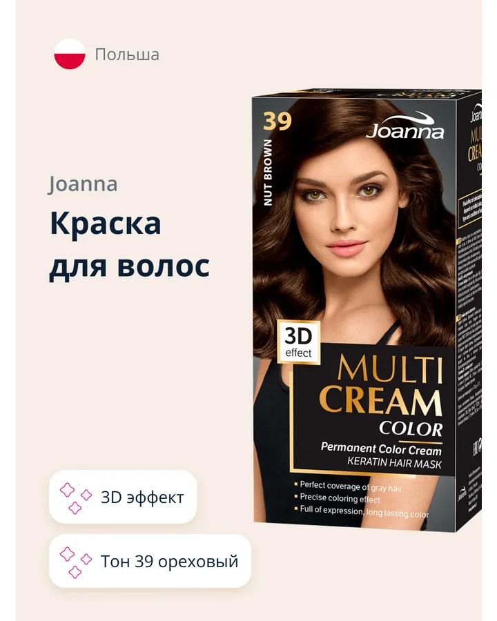 5Краска для волос JOANNA Multi cream 3d ореховый (тон 39)Хорошая краска, держится долго. Единственный минус наноситься тяжеловато.