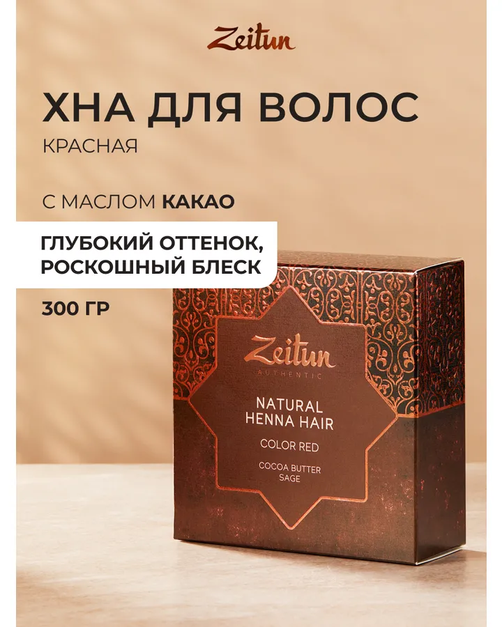 Хна натуральная Zeitun для волос и бровей медно-рыжий 300г