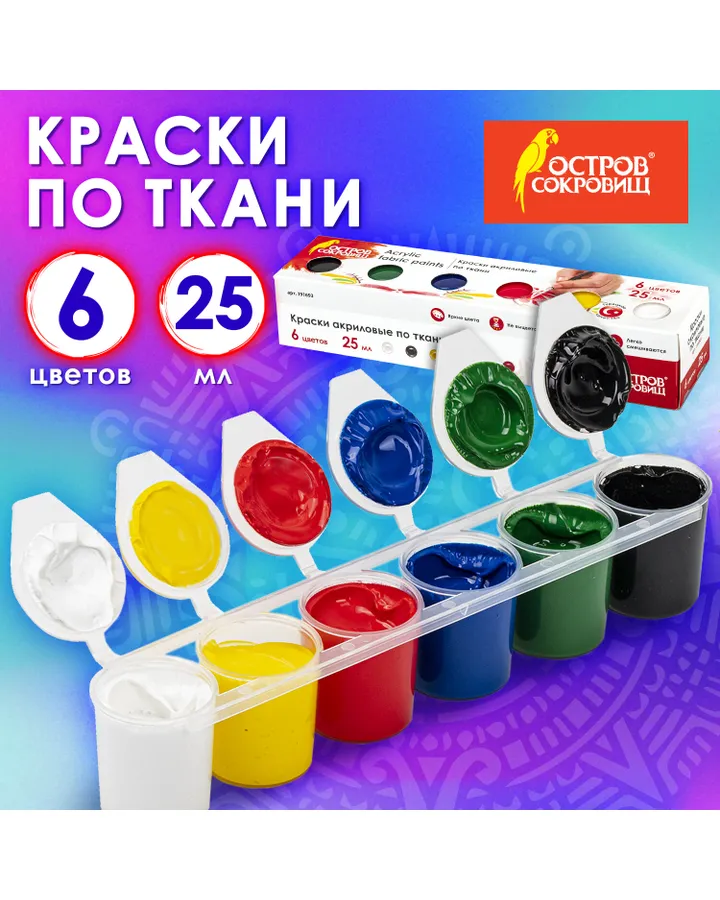 Краски акриловые Остров Сокровищ 6 цв.Обожаю эти краски! Яркие и насыщенные. Отлично смотрятся на холсте.