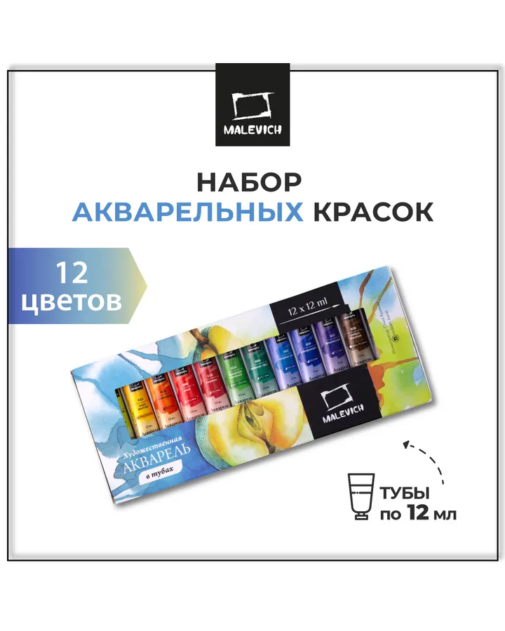 Краски акриловые Малевичъ 12 цв.Отличный акрил для рисования, позволяет даже неумелым и нерукастым что-то нарисовать