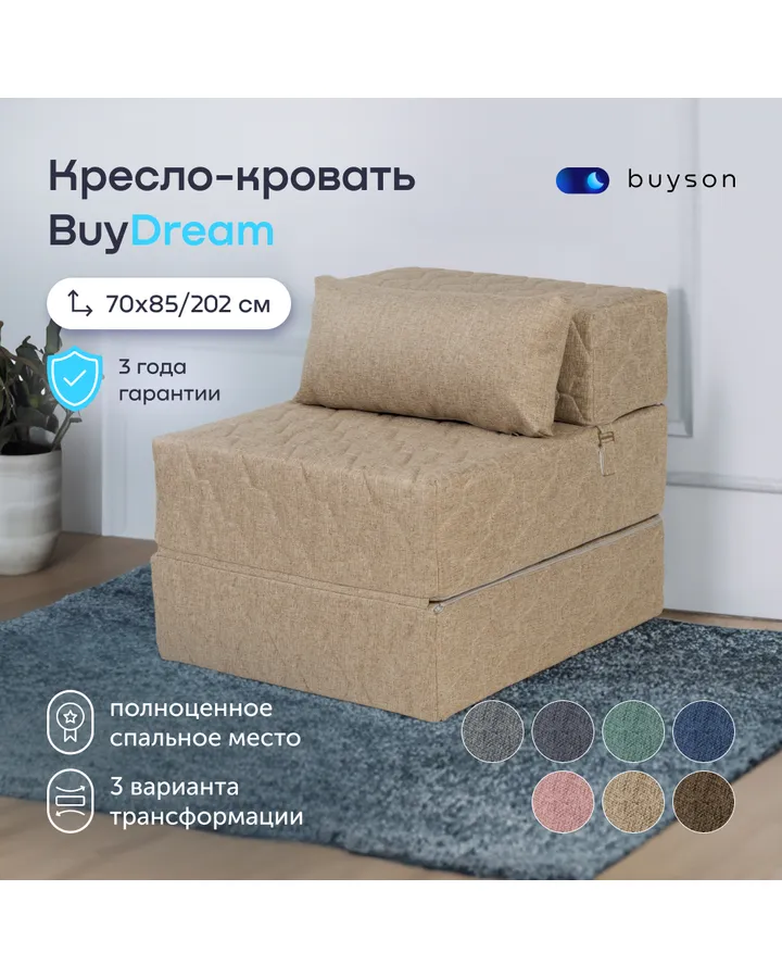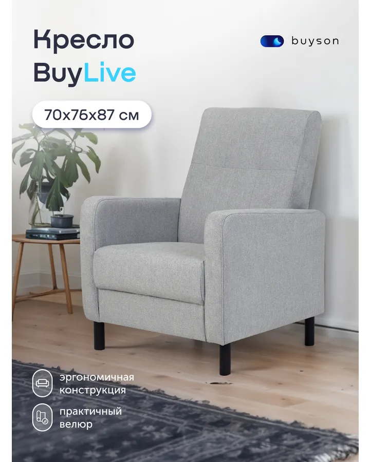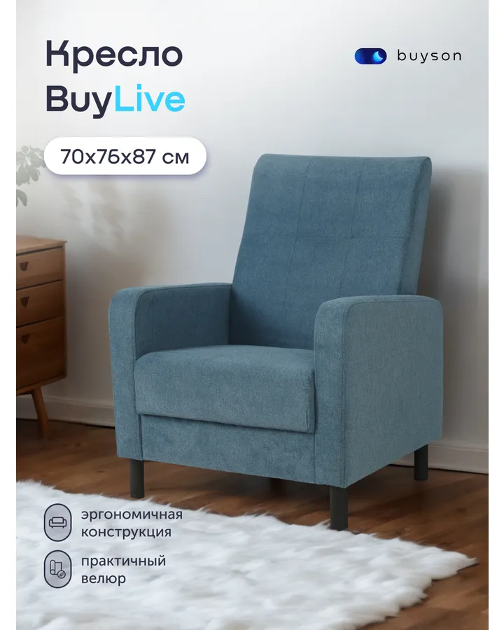 Кресло buyson BuyLiveИскал кресло для небольшой гостиной. Это идеально подошло по размеру. При этом оно очень удобное и стильное. Я доволен покупкой.