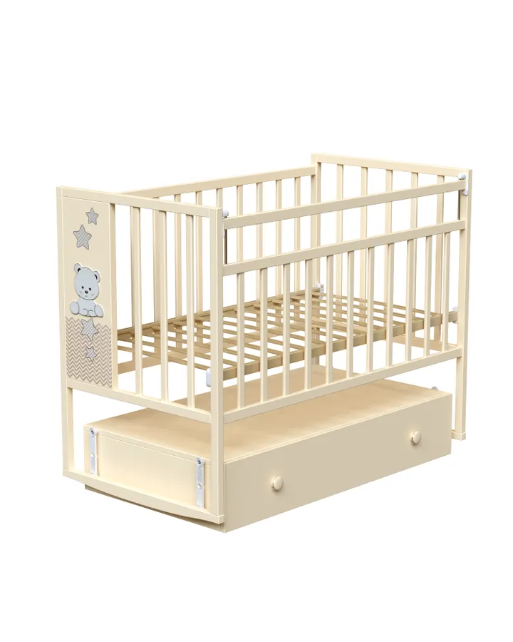 Детская кроватка ВДК прямоугольная, продольный маятник (слоновая кость)