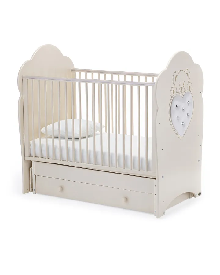 Детская кроватка ВДК, поперечный маятник (слоновая кость)Все в ней хорошо, но маятник скрипит в пластивых частях, так что отлично слышно когда ночью ребёнок шевелится. В остальном отличная, удобная, не слишком высокая.