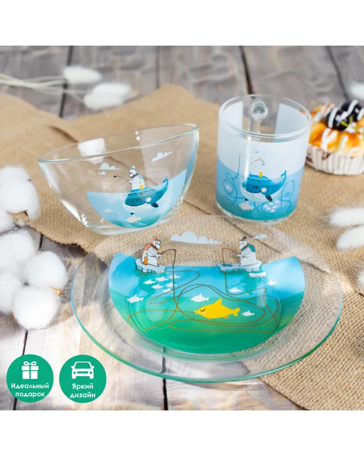 5Набор детской посуды Доляна «Ловись большая и малая» 3 предмета миска 450 мл тарелка d=20 см кружка👍