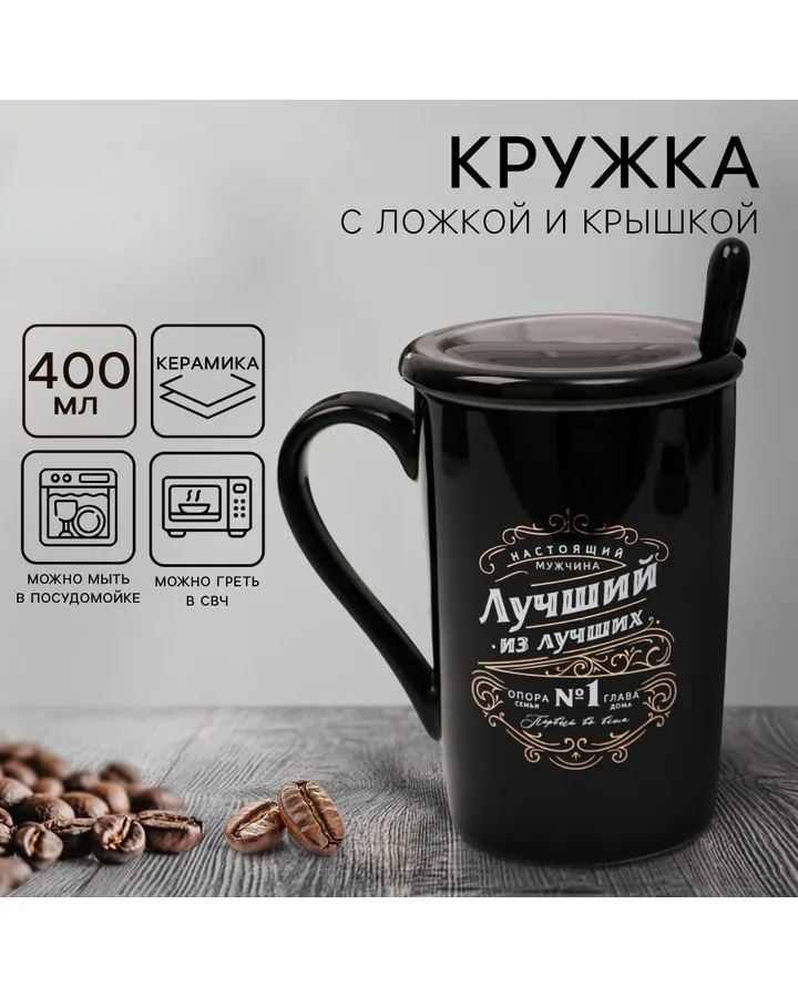 Кружка Дорого внимание Лучший из лучших 420 мл с ложкой и крышкой