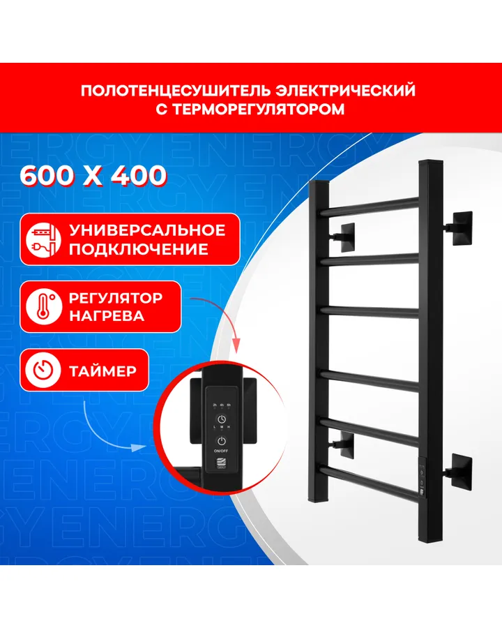 Полотенцесушитель электрический Energy RELO 600x400 черный