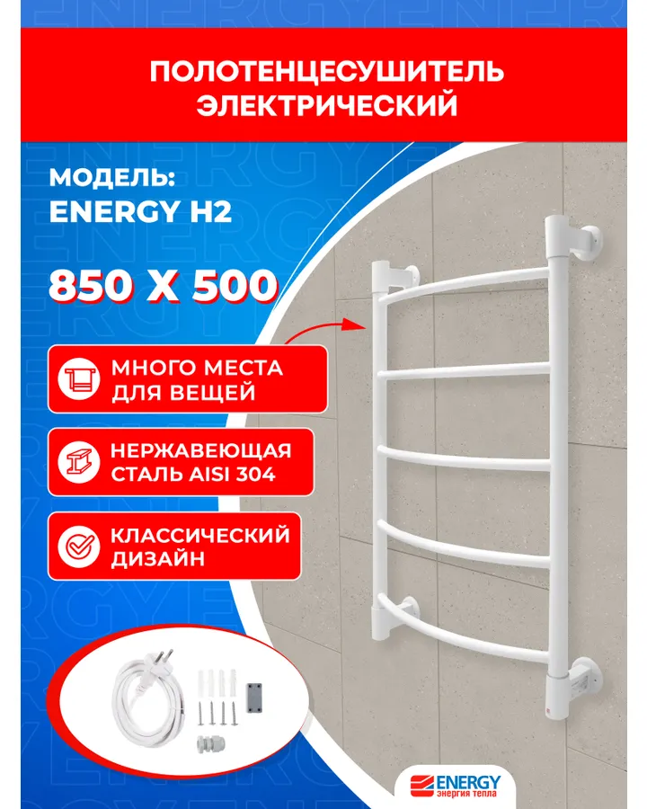 5Полотенцесушитель электрический Energy ROUND MODUS 800x500