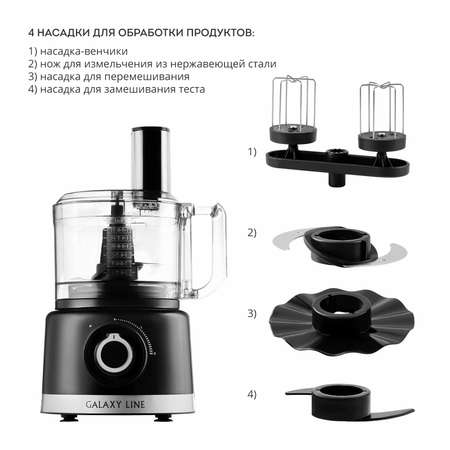 5Кухонный комбайн Galaxy LINE gl2309лХороший пластиковый комбайн, но не хватает насадки для нарезки кубиков
