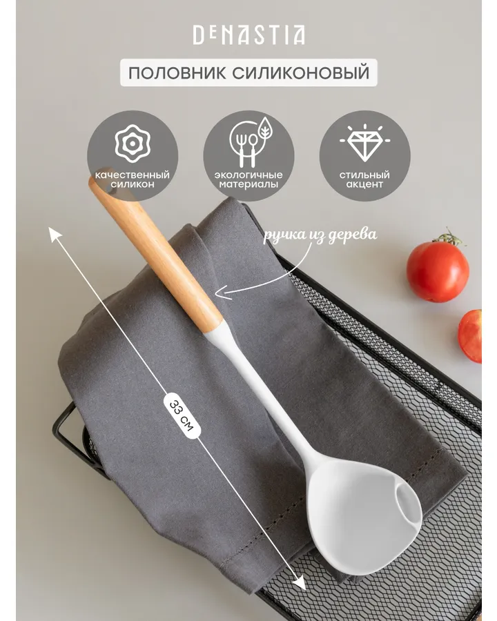 5Щипцы кухонные DeNASTIA для спагетти 26x3.3 см нержавеющая сталь силикон серый мятный A000183Замечательные!