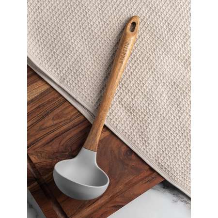 Шумовка DeNASTIA силикон с ручкой из акации 34x10 см серый A000147