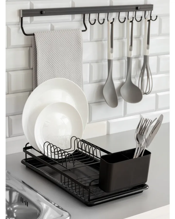 5Коврик для сушки посуды DeNASTIA в наборе с пластиковой сушилкой бежевый T000211Функциональный, удобный