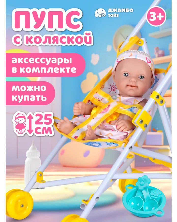 Кукла пупс AMORE BELLO с коляской высота 25 см