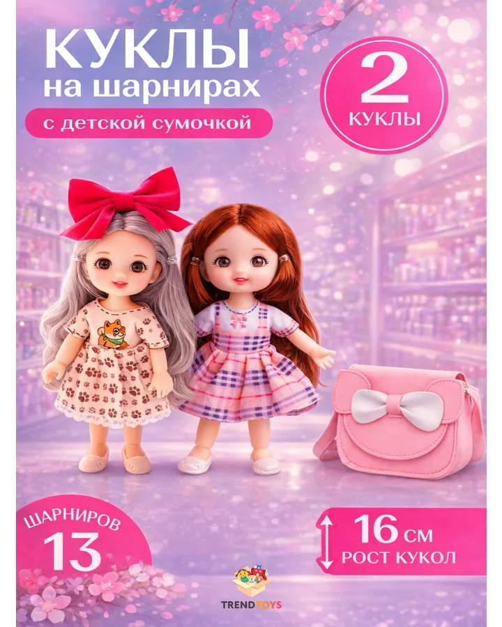 Кукла мини TrendToys набор 2 шт, с детской сумочкой высота 16 см
