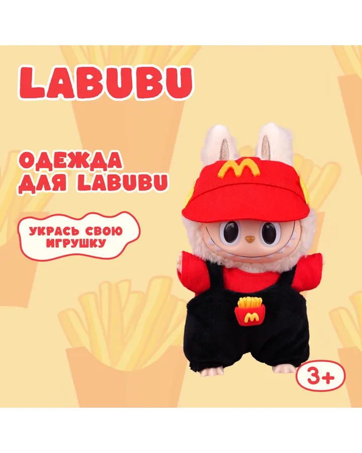 Наша игрушка ЛабуБу теперь выглядит ещё круче в своей новой одежде, выполненной в стиле Макдоналдс! Материал мягкий и приятный на ощупь, идеально подходит для маленьких лапок и не мешает играть. Дизайн точно повторяет форму настоящих сотрудников ресторана, что делает игру ещё более увлекательной и реалистичной.