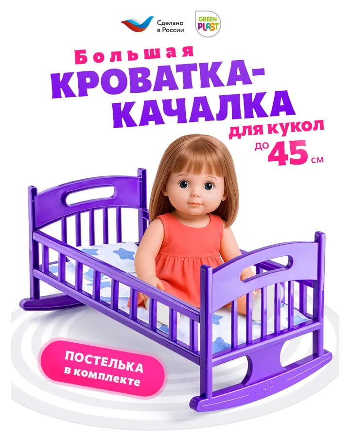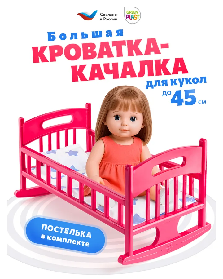 5Аксессуар для кукол Green Plast кроватьКроватка хорошая,белье тоненькая тряпочка и маленькая подушка,ну ребёнку нравится
