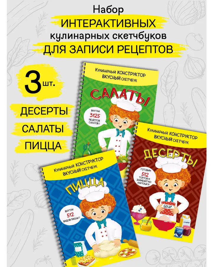 Скетчбуки кулинарные BimBiMon Набор из 3 штукСпасибо очень понравилось