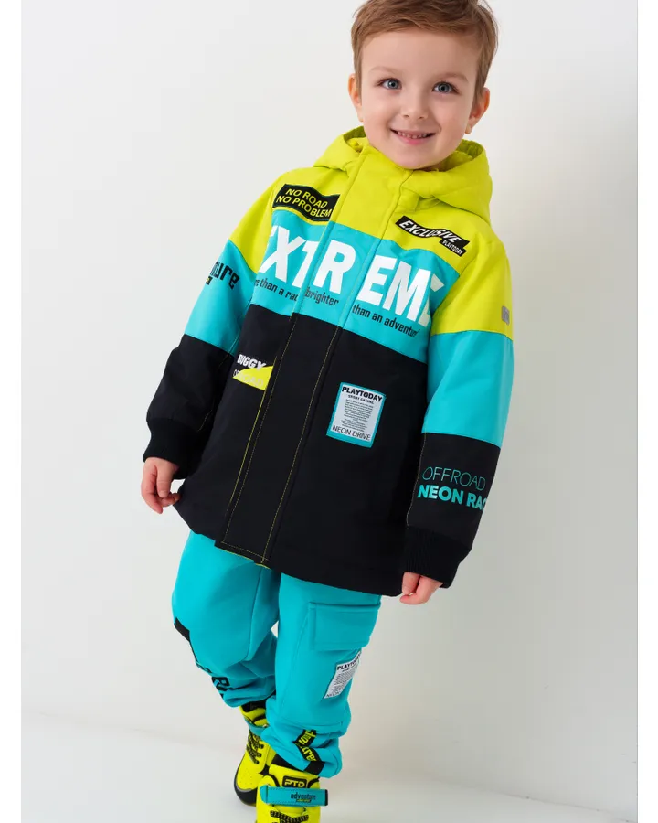 Хорошая тёплая куртка, единственное когда ребёнок сидит, она вся поднимается вверх к подбородку, ребёнку не удобно