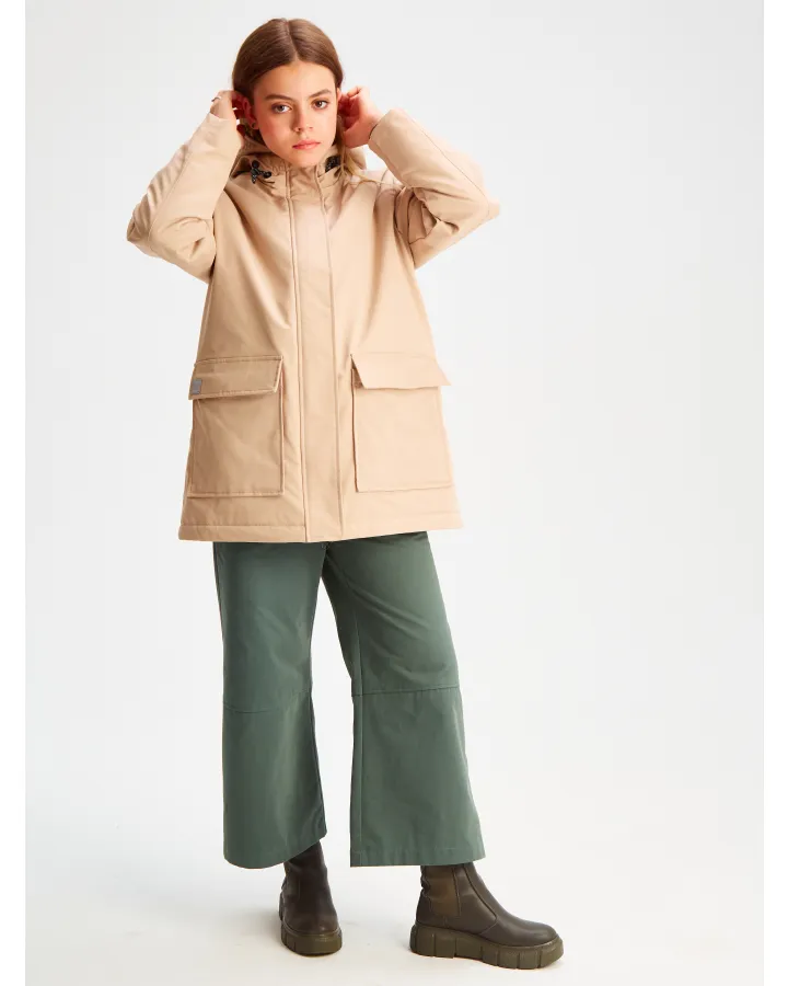 Теплая, удобная, не промокает, внутри кармана флис, глубокий капюшон - одни плюсы