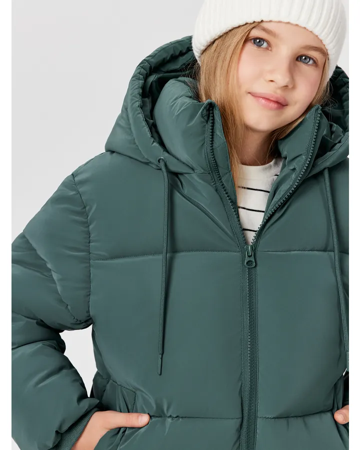 Очень хорошая куртка, теплая, но при этом не тяжелая, сидит аккуратно по фигуре. Ребенку удобно двигаться. Сшита аккуратно. Рекомендую к покупке!