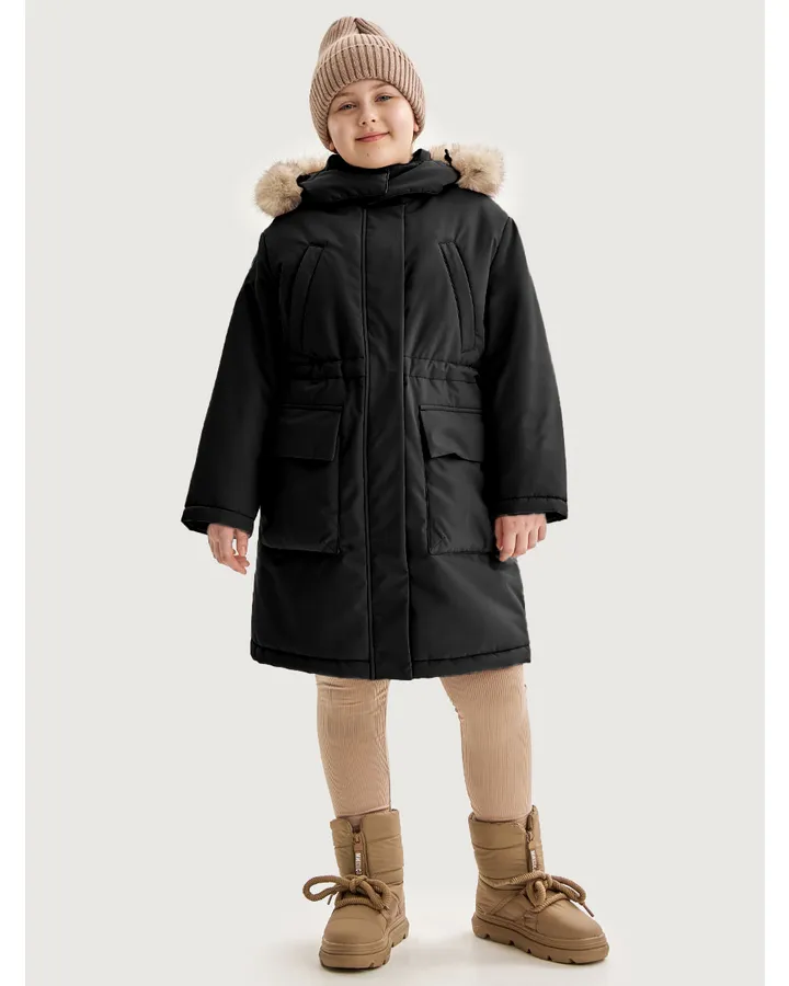 Хорошая парка, теплая и не промокает. Дочка очень долго выбирала, эта хорошо села по фигуре, и не тяжелая, без ярких элементов.