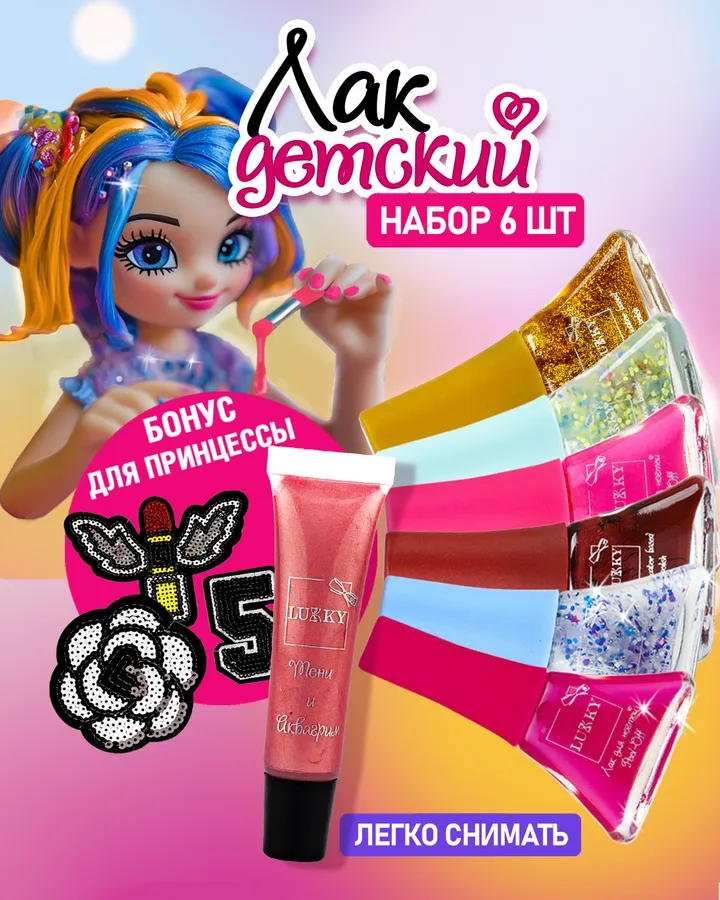 Детский лак для ногтей на водной основе LUKKY для детей с трех лет 6 штук peel-off 5,5 мл