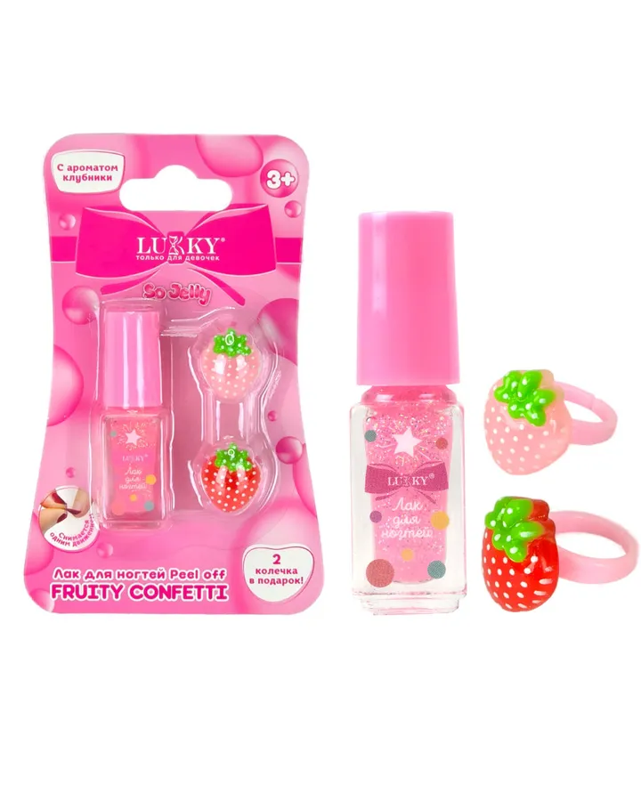 Лак для ногтей peel off с блёстками LUKKY Fruity Confetti розовый и 2 колечка