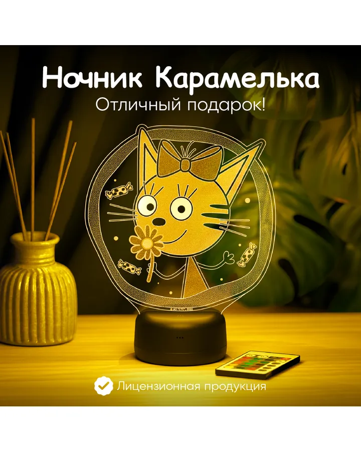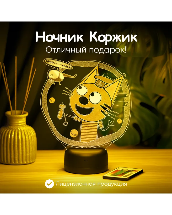 Ночник Три кота КомпотПокупала ребенку в подарок на день рождения! Красивый,в комплекте пульт управления,идея замечательная)