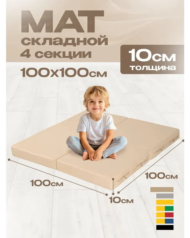 Мат спортивный KMS sport № 11 (100 х 100 х 10) складной 4 сложения бежевый