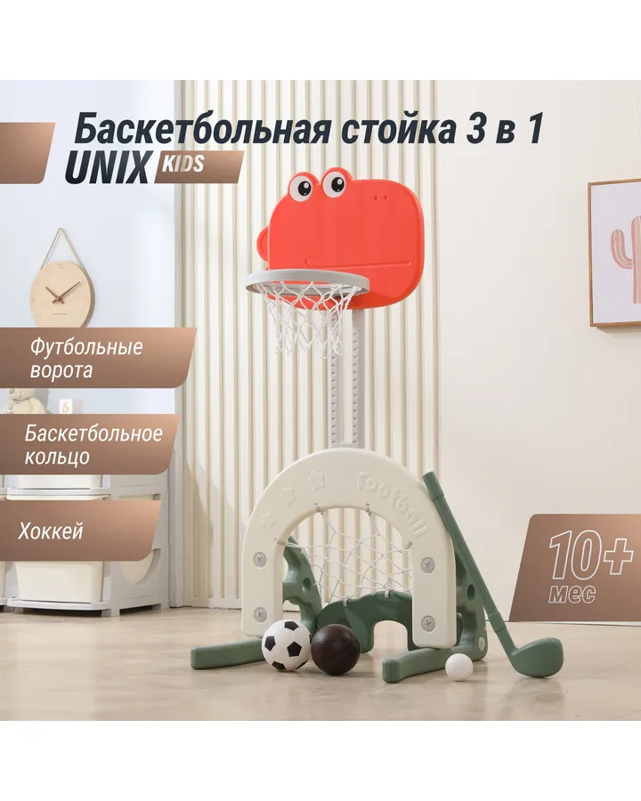 5Баскетбольная стойка детская UNIX Kids Space grey 3 в 1 с хоккейными и футбольными воротами для дома и улицыСтоит своих денег
