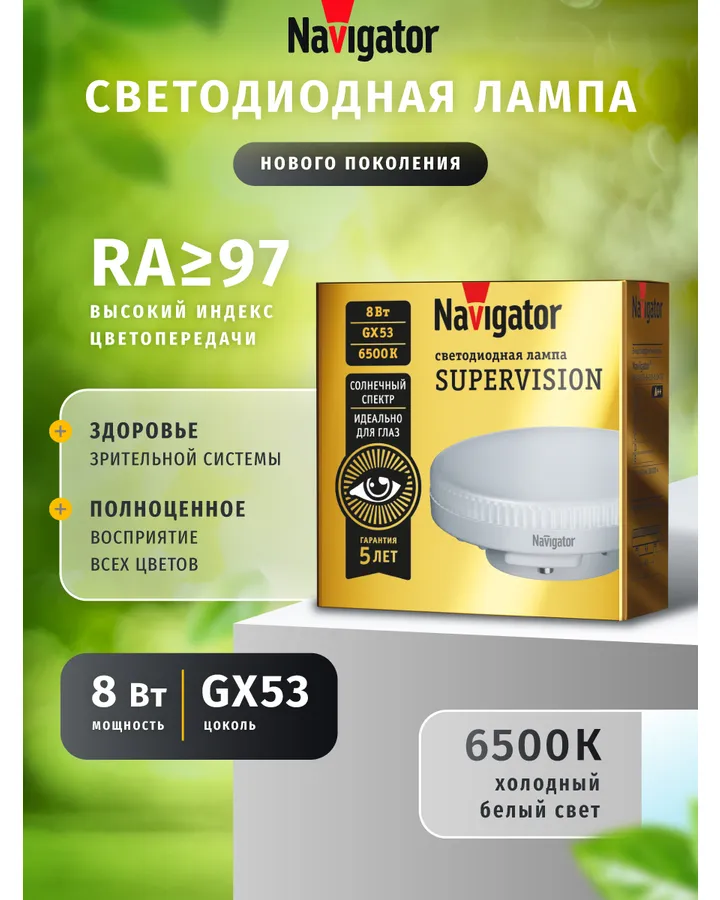 Лампа светодиодная солнечного спектра Navigator 95 430 GX53 8 Вт 4000К