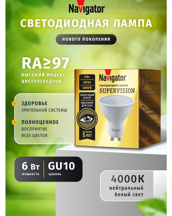 Лампа светодиодная солнечного спектра Navigator 95 465 6 Вт, GU10, 4000К