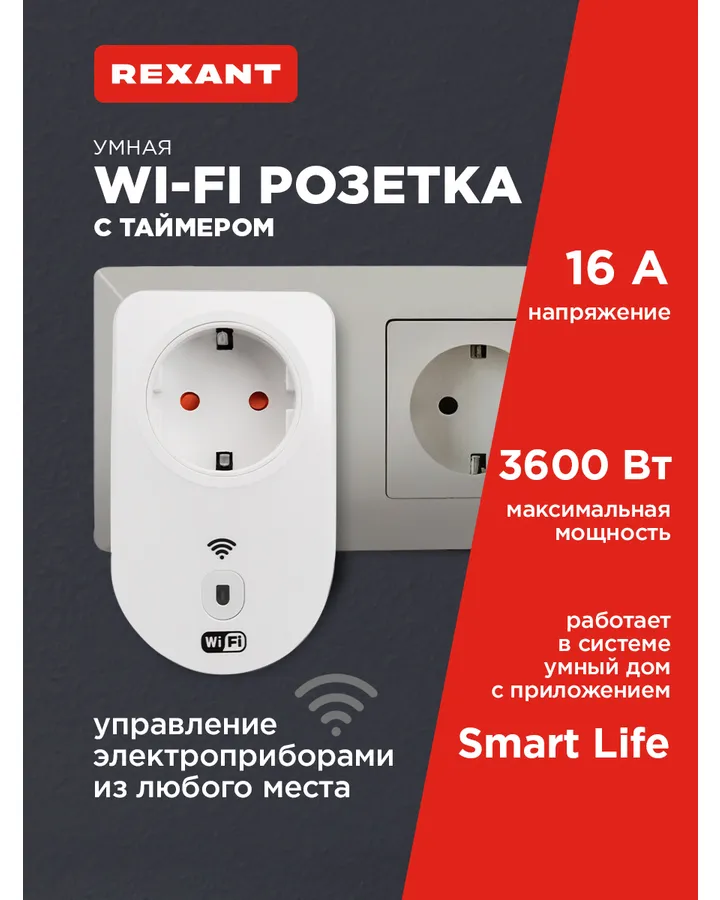 Умная розетка REXANT Wi-Fi с дистанционным управлением