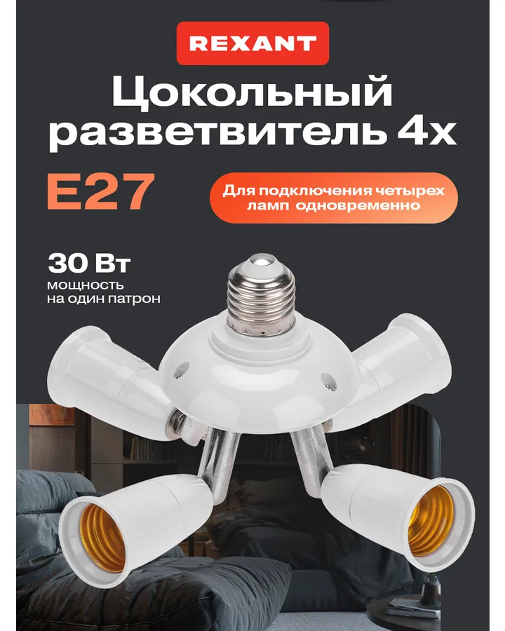 Разветвитель цокольный REXANT Е27 - 4хЕ27 с поворотными цоколями