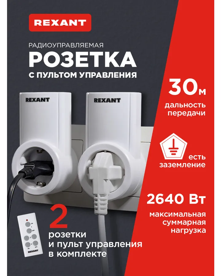 Радиоупраляемая розетка REXANT с пультом управления