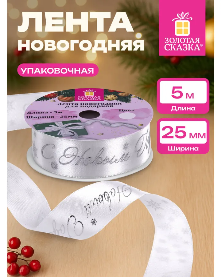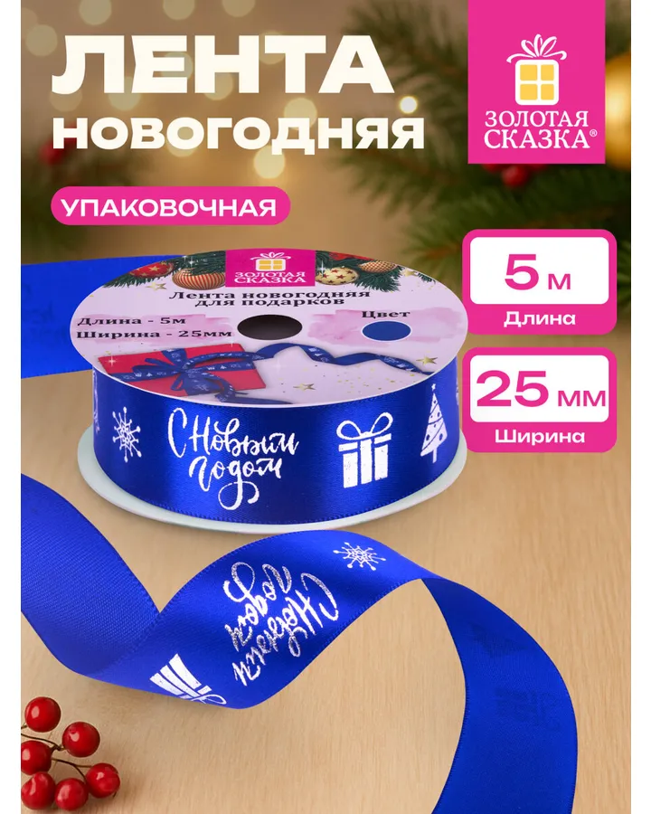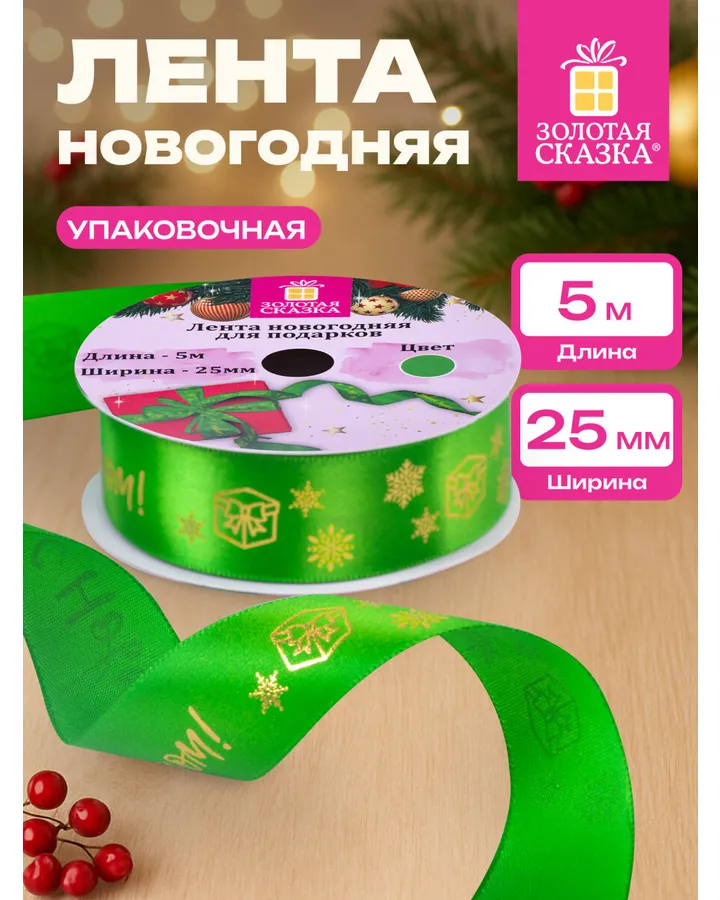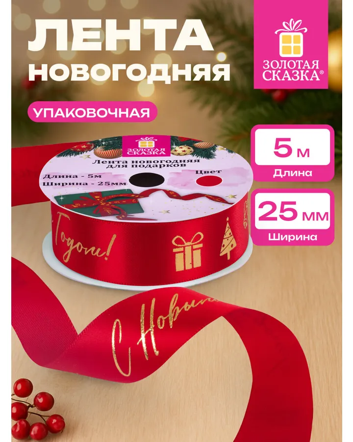 Лента упаковочная новогодняя Золотая сказка для подарков и декора 25мм x 5мЛента просто супер! Очень красивая и удобная.