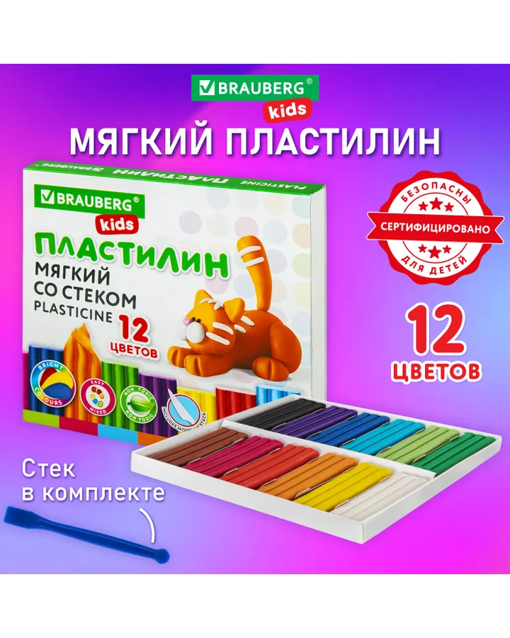 Пластилин Brauberg 12 цв.