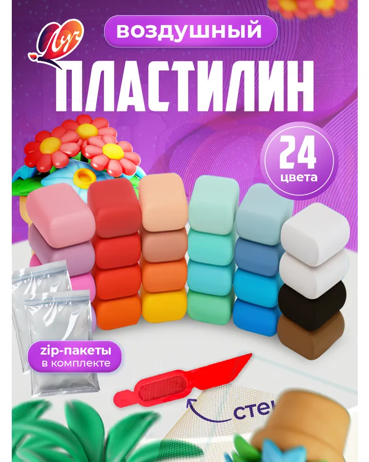 5Пластилин Луч воздушный 36 цв.Хорошая консистенция,удобно лепить. А вот пакетики без зип-лока неудобные. Отдельно такие пустые пакетики идут в комплекте,но перекладывать туда пластилин- лишняя ненужная работа.