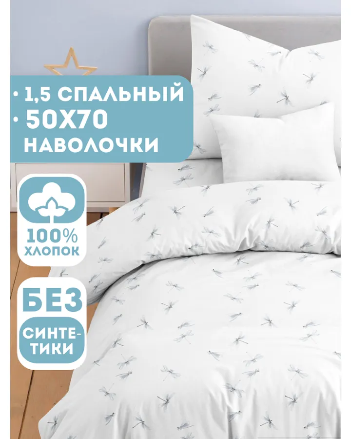 Комплект постельного белья Ночь Нежна Стрекозки полутораспальный 3 предм.