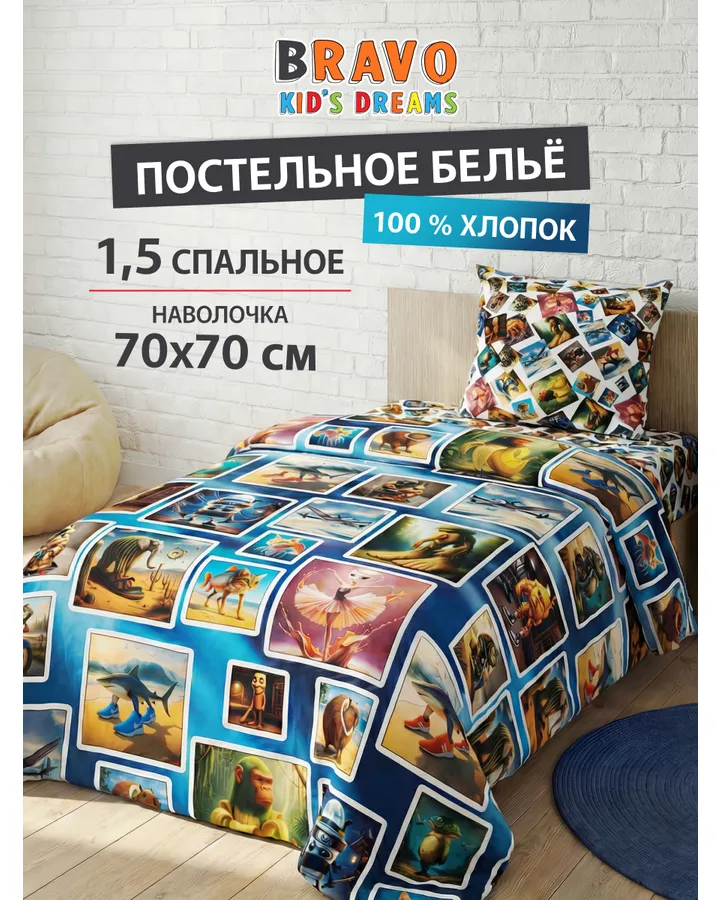 Комплект постельного белья BRAVO kids dreams Мемчик поплин полутораспальный 3 предм.