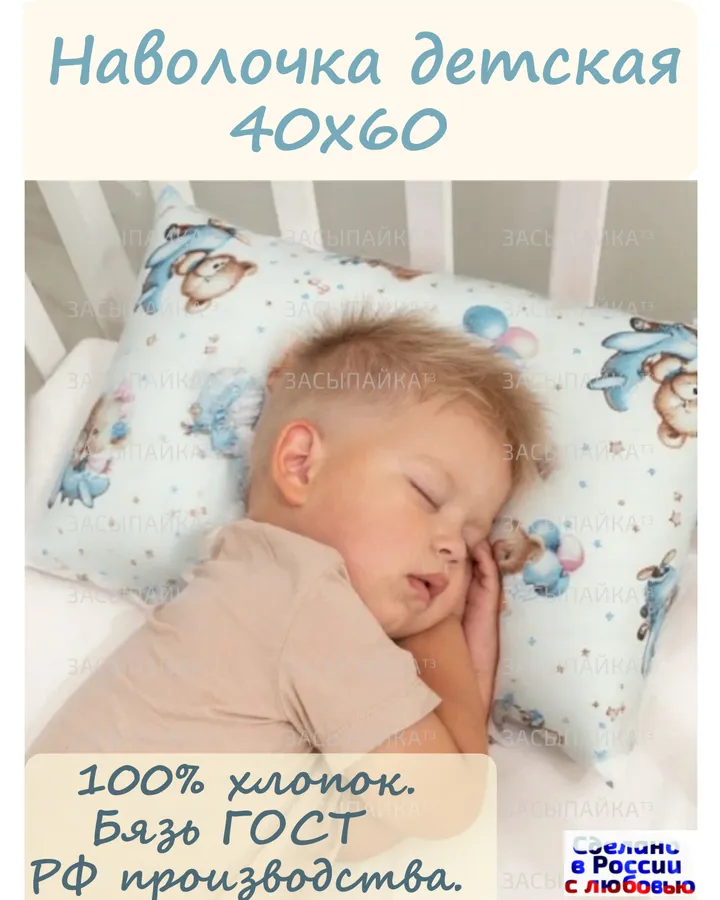 Наволочка ЗАСЫПАЙКА рисунок мишки 40 x 60 см