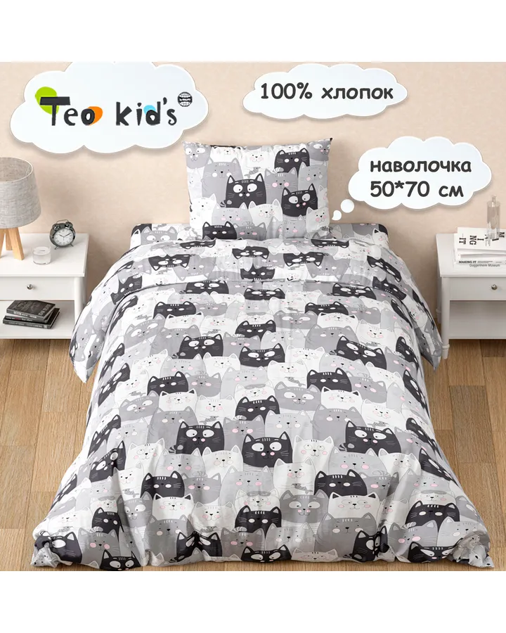Комплект постельного белья TEO kids Серые котики полутораспальный 3 предм.