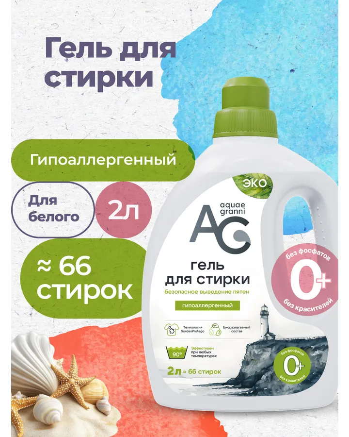 Гель для стирки Aquae Granni Sensitive 0+ без отдушки 1 лОтличный гель для стирки. Стираю им также одежду для взрослых, работает замечательно