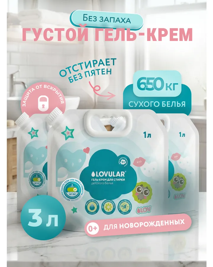 4Гель для стирки LOVULAR 1 лВ принципе отстирывает неплохо, запах приятный. По крайней мере мылом не пахнет