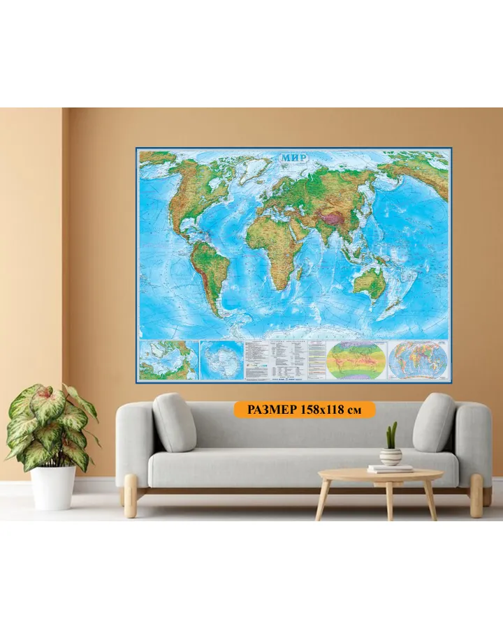 Карта настенная Атлас Принт Мир 1.58x1.18 м